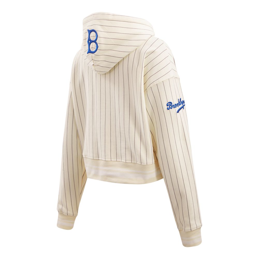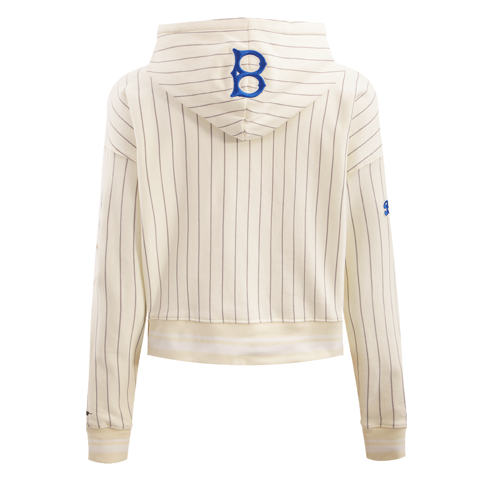 MLB BROOKLYN DODGERS PINSTRIPE RETRO CLASSIC WOMEN'S RIB CROPPED PULLOVER HOODIE