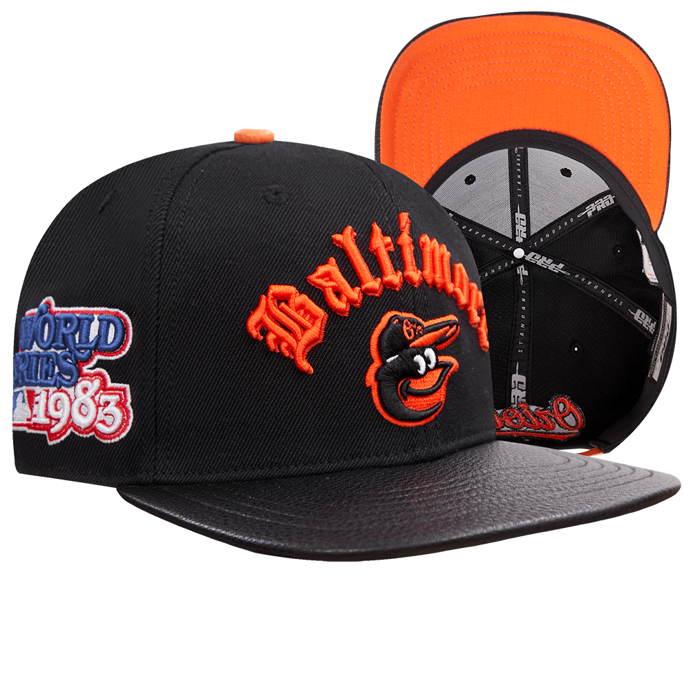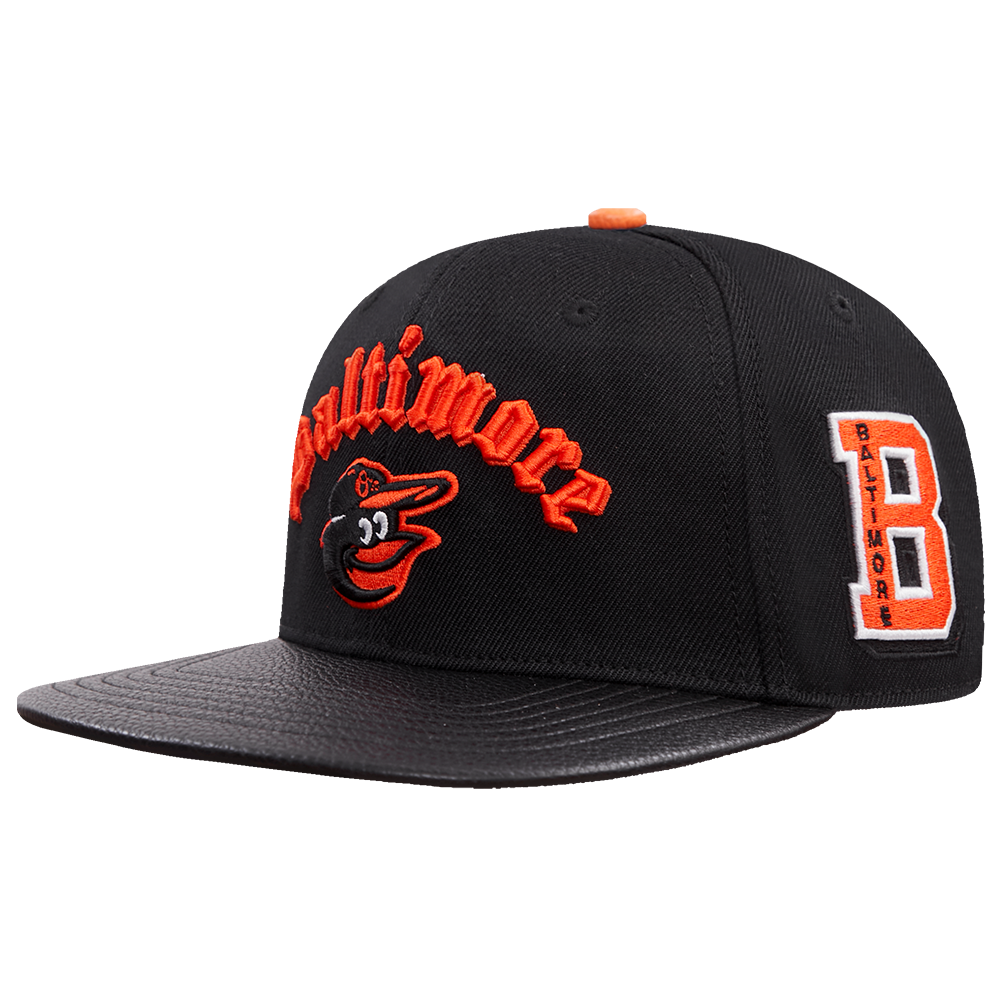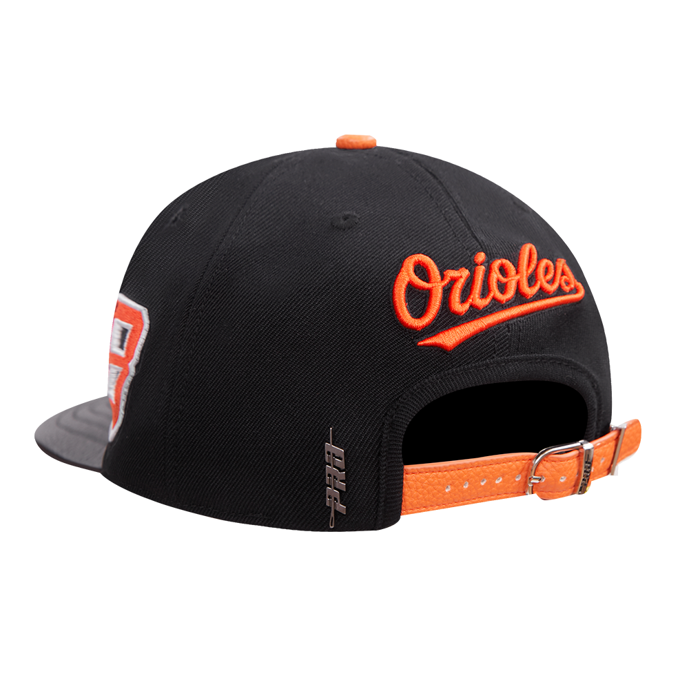 The Pro Standard Premium MLB Baltimore Orioles Old English Unisex 6 Panel Leather Strapback (Black)