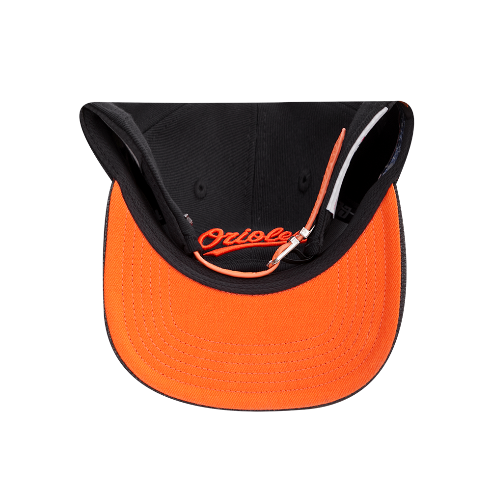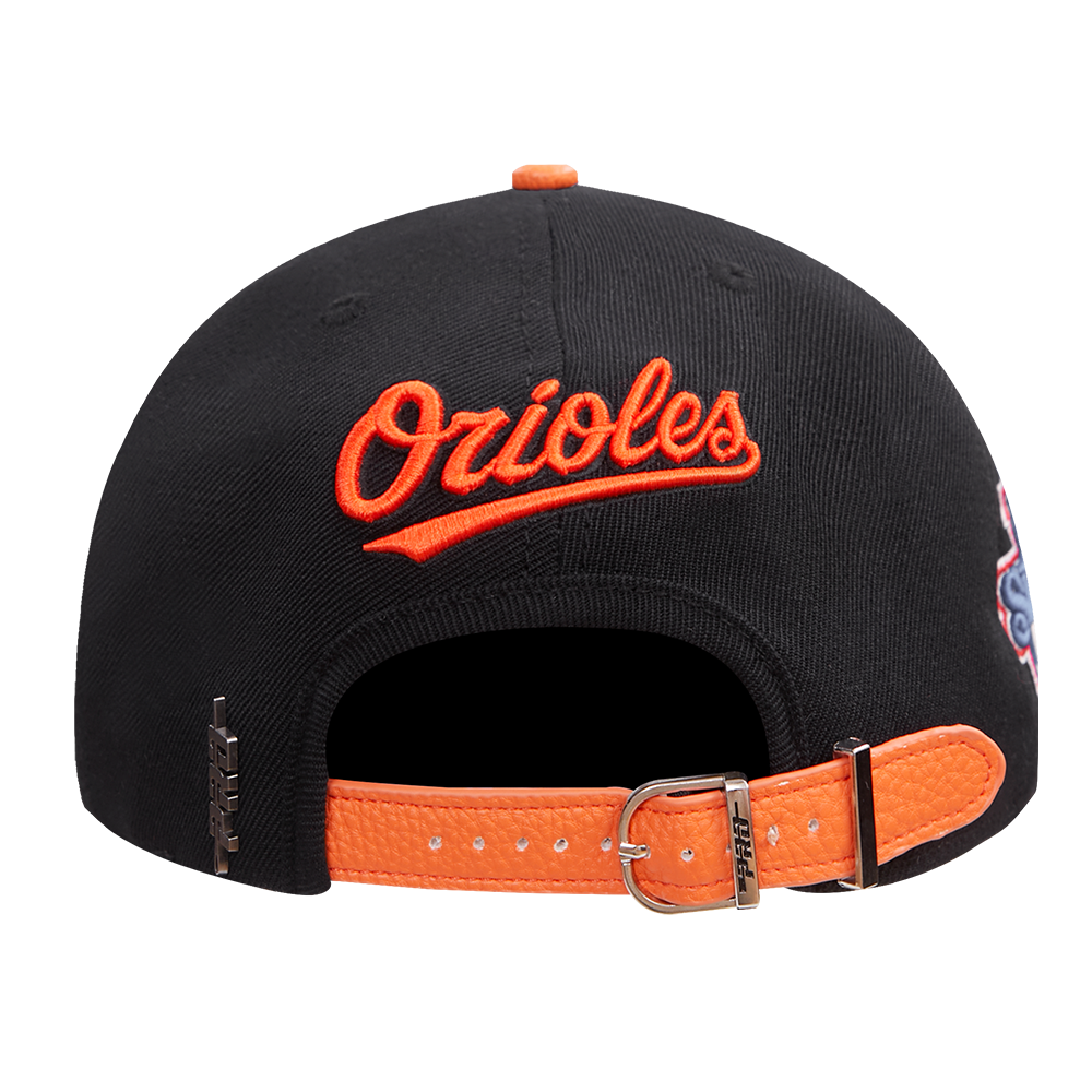 MLB BALTIMORE ORIOLES OLD ENGLISH UNISEX 6 PANEL LEATHER STRAPBACK