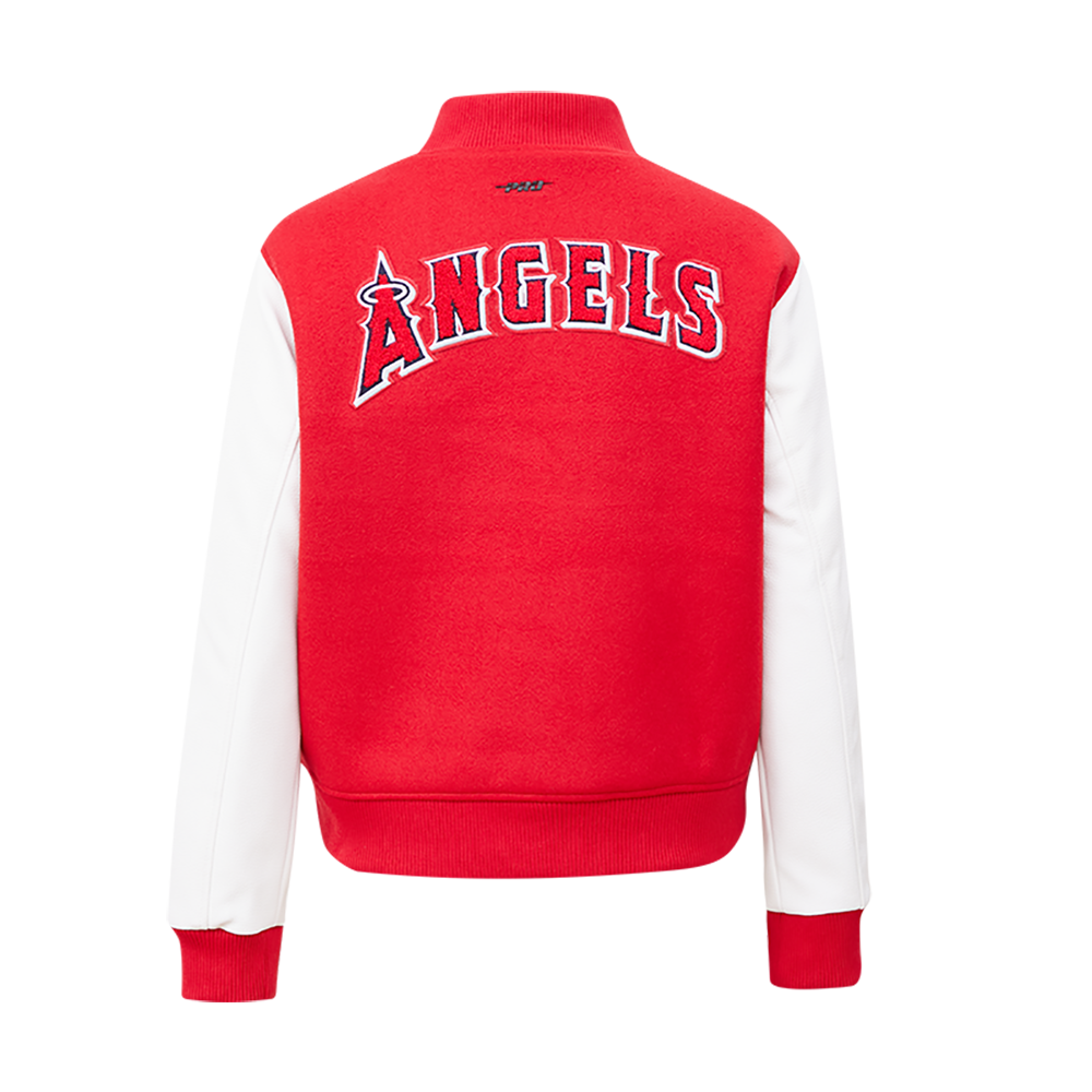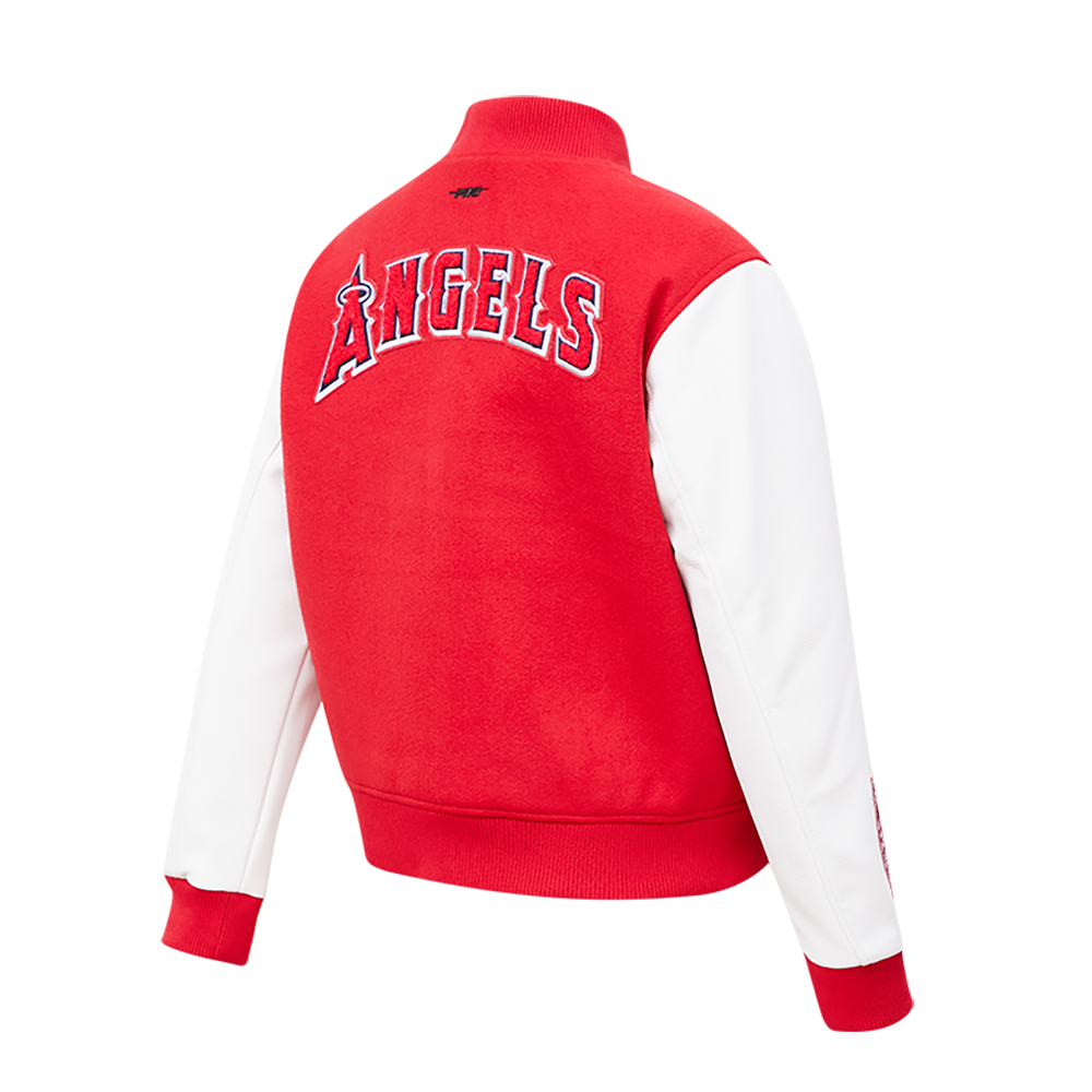 The Pro Standard Premium MLB Los Angeles Angels Classic Women's Varsity Jacket (Red/White)