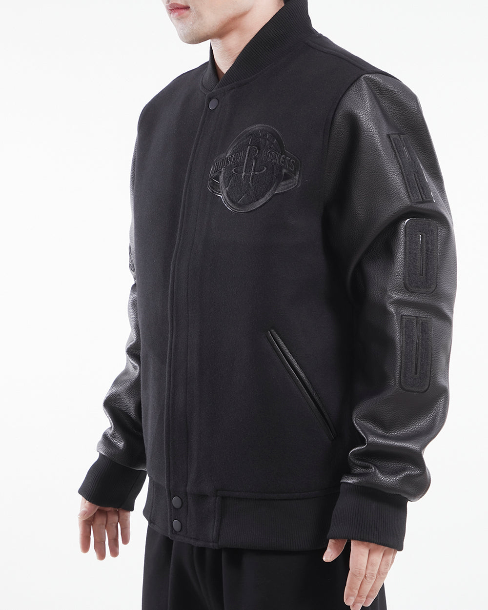 NBA HOUSTON ROCKETS TRIPLE BLACK WOOL MEN'S VARSITY JACKET