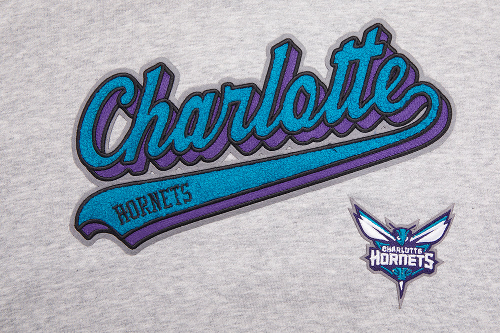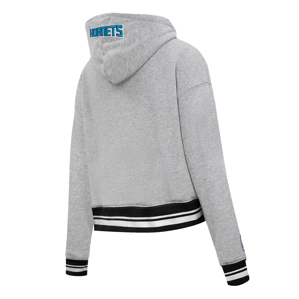 NBA CHARLOTTE HORNETS SCRIPT TAIL WOMEN'S RIB FLEECE CROPPED PULLOVER HOODIE