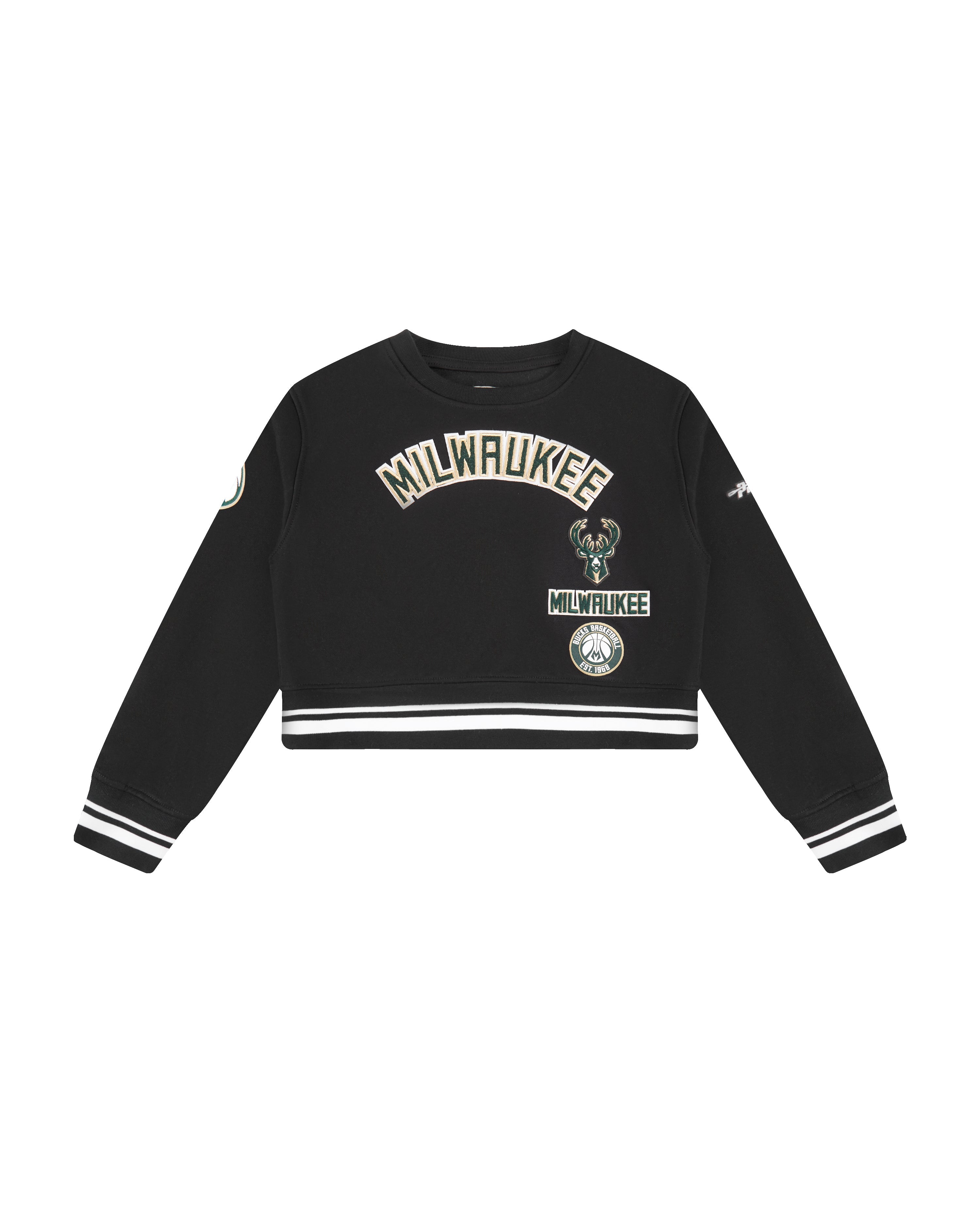 NBA MILWAUKEE BUCKS RETRO CLASSIC LITTLE GIRLS RIB FLEECE CREWNECK