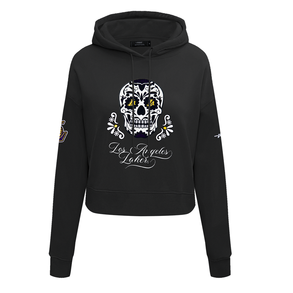 NBA LOS ANGELES LAKERS SUGAR SKULL WOMEN'S FLEECE CROPPED PULLOVER HOODIE