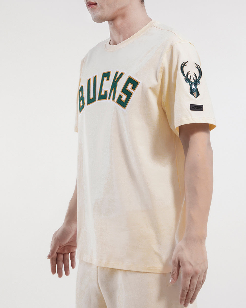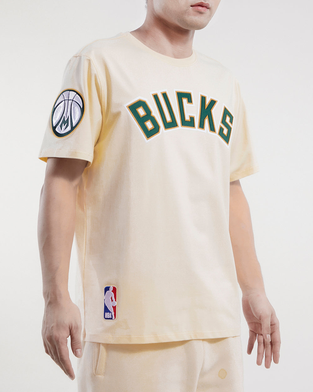The Pro Standard Premium NBA Milwaukee Bucks Tackle Twill Men's Tee (Eggshell)