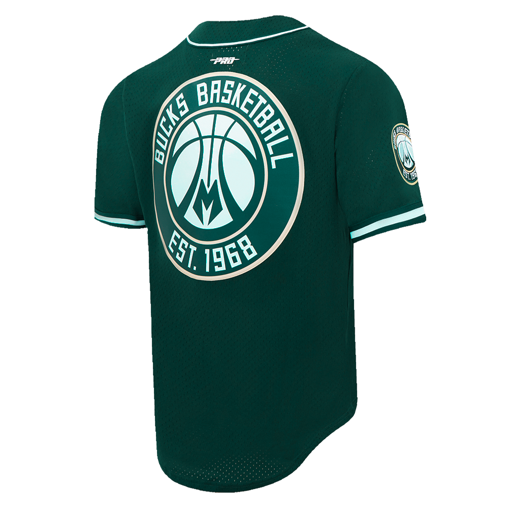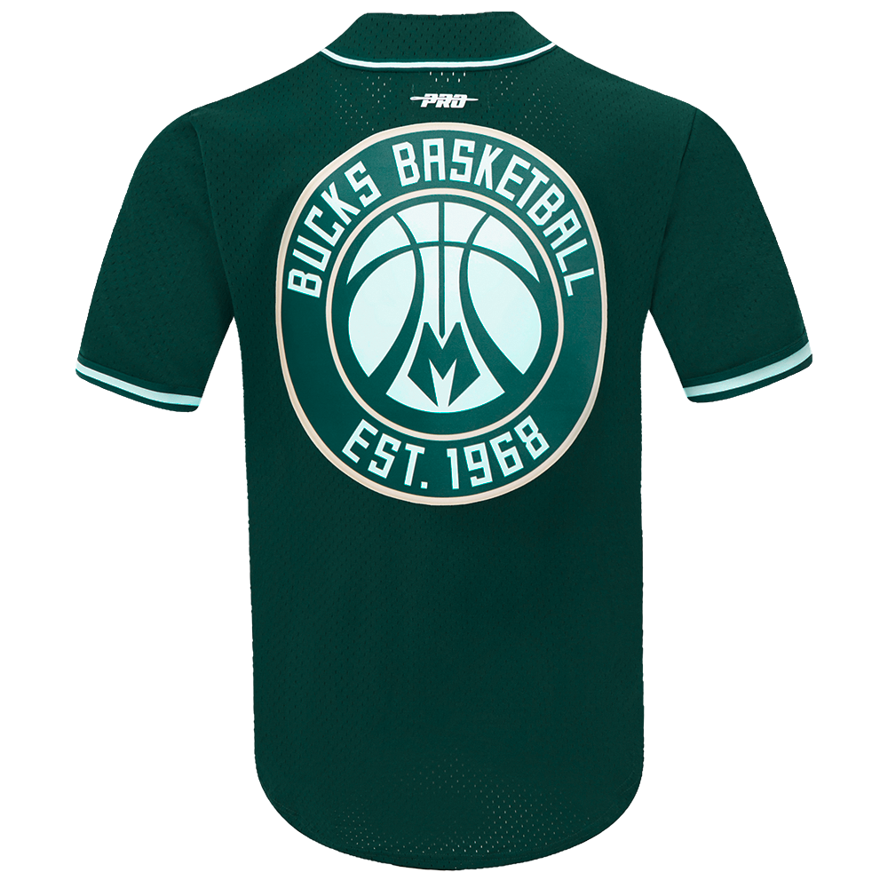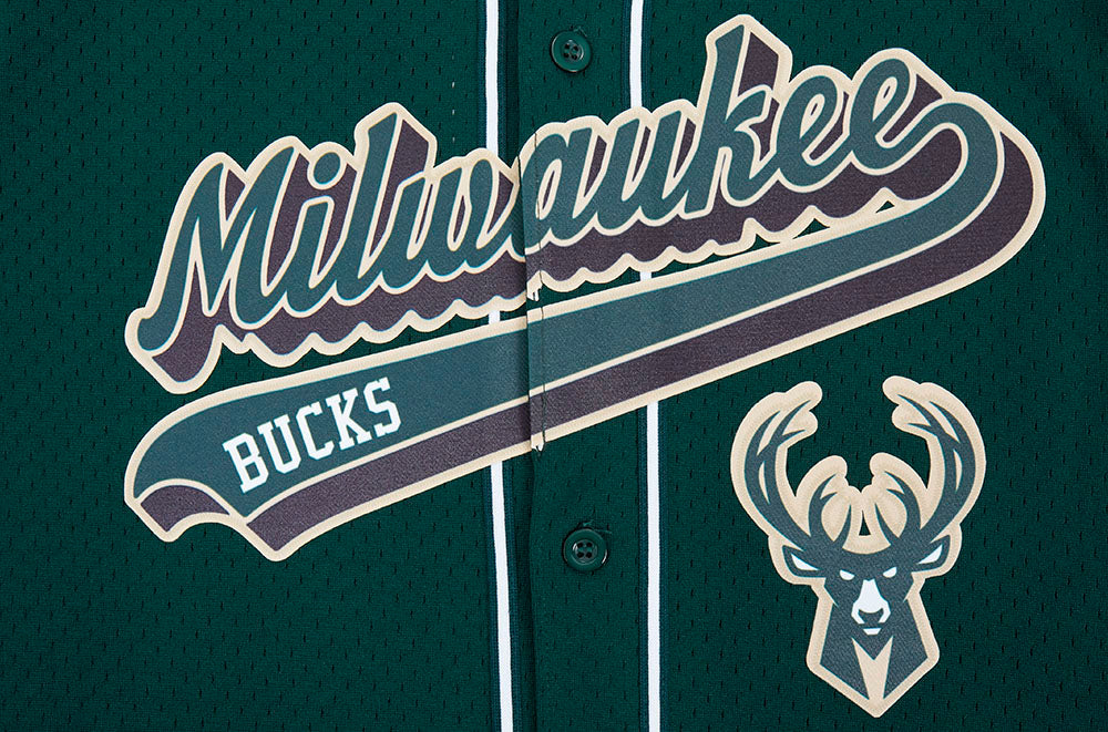 NBA MILWAUKEE BUCKS SCRIPT TAIL MEN'S MESH BUTTON DOWN SHIRT