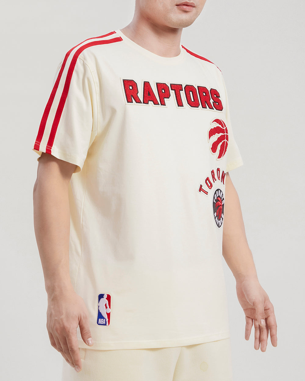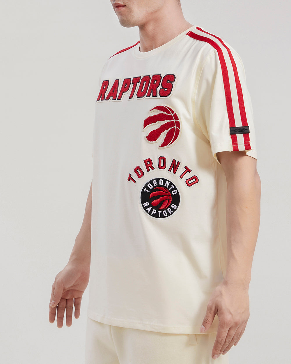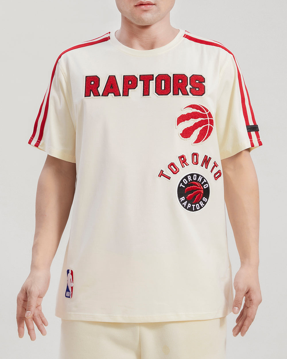 The Pro Standard Premium NBA Toronto Raptors Retro Classic Men's Striped Tee (Eggshell/ Red)