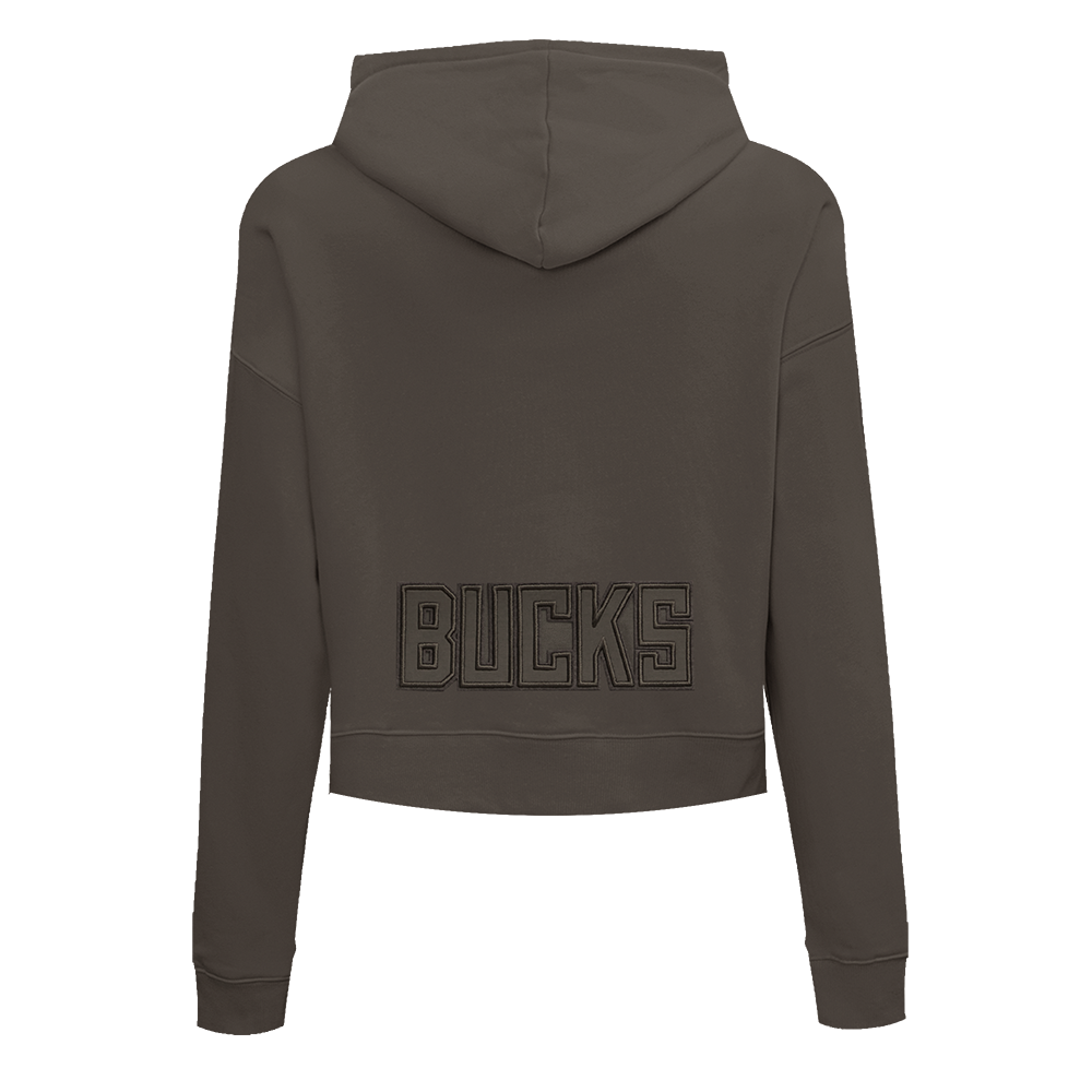 The Pro Standard Premium NBA Milwaukee Bucks Neutral Cropped WoMen's PO Hoodie (Dark Taupe)