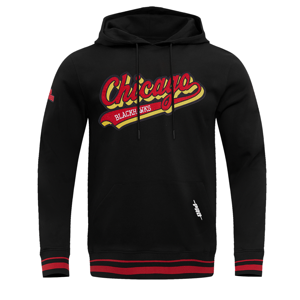 NHL CHICAGO BLACKHAWKS SCRIPT TAIL MEN'S RIB FLC PO HOODIE