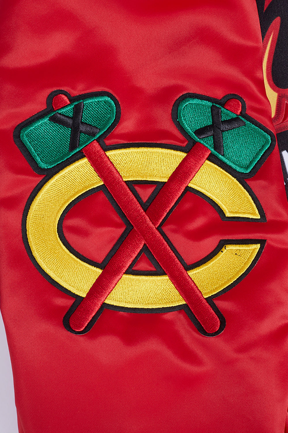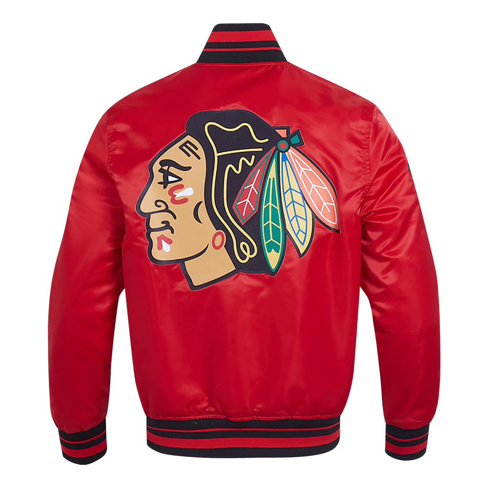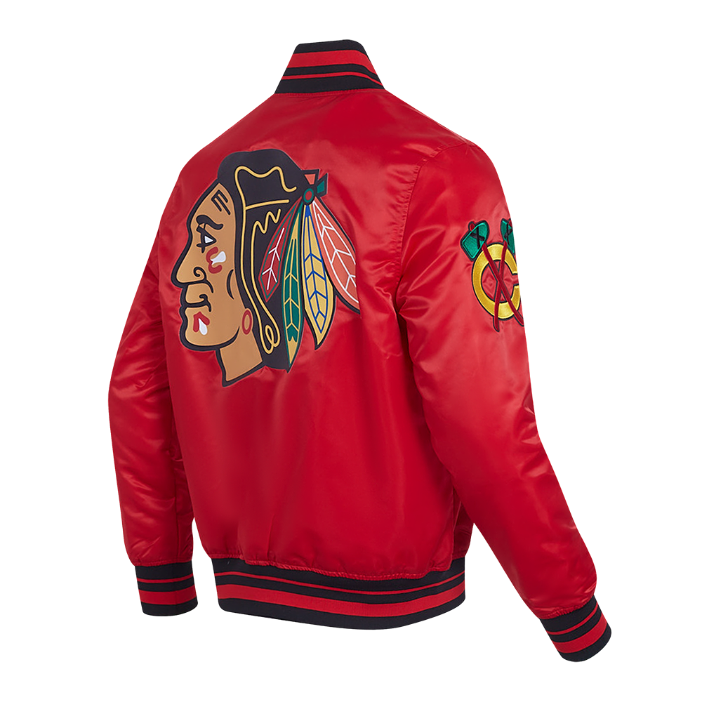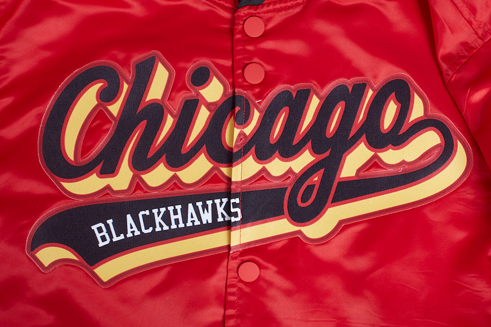 NHL CHICAGO BLACKHAWKS SCRIPT TAIL MEN'S RIB SATIN JACKET