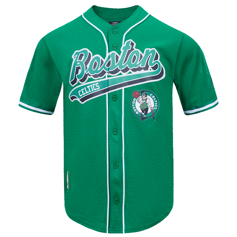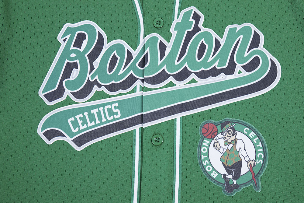 NBA BOSTON CELTICS SCRIPT TAIL MEN'S MESH BUTTON DOWN SHIRT