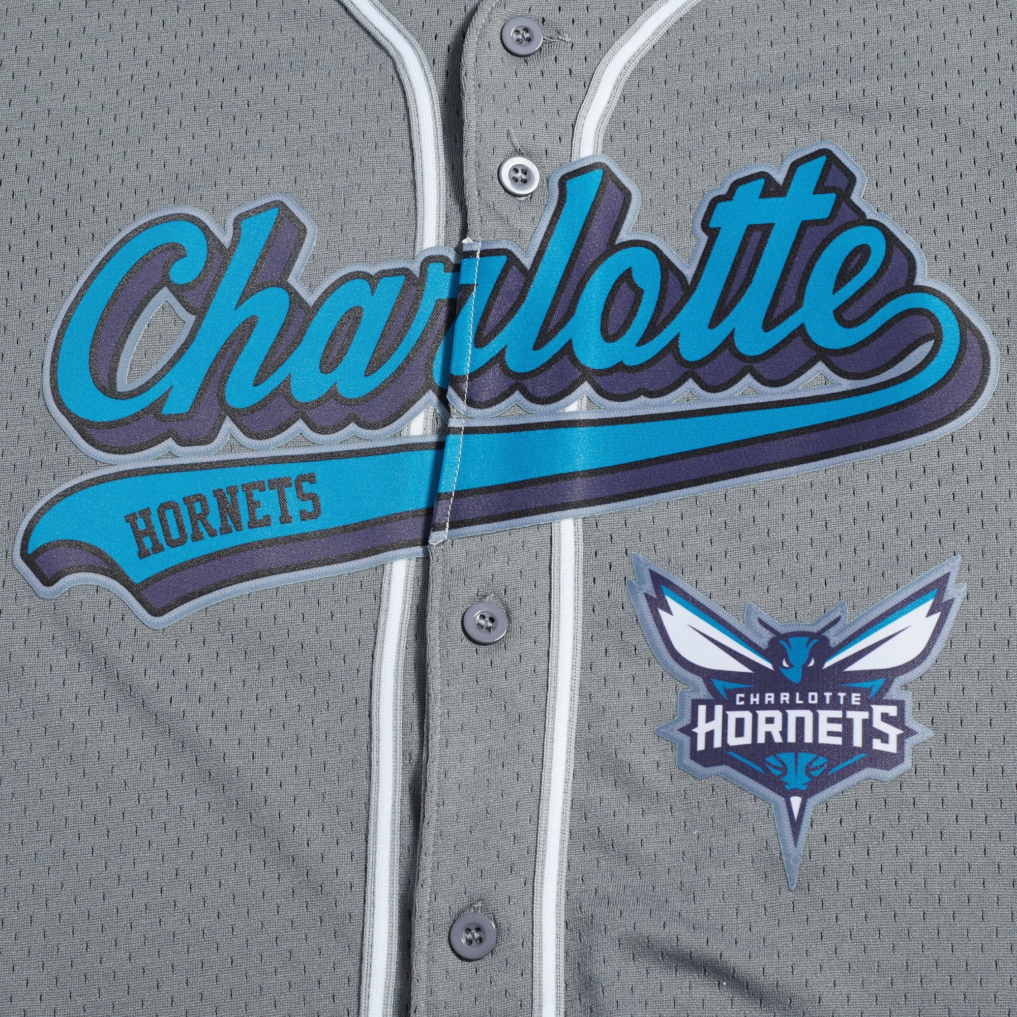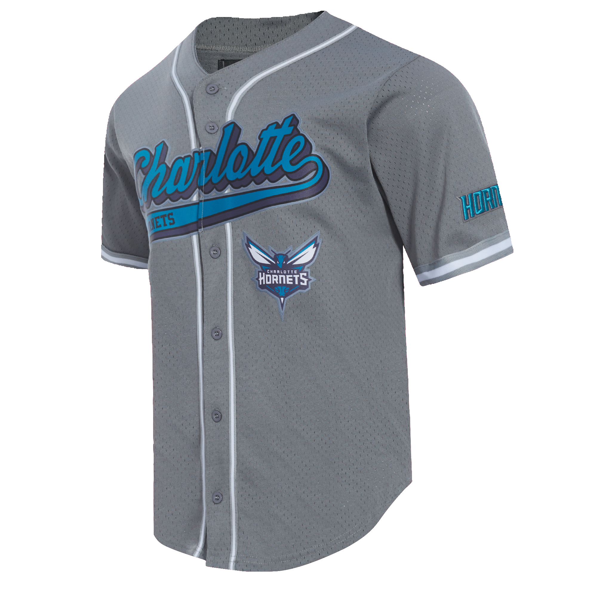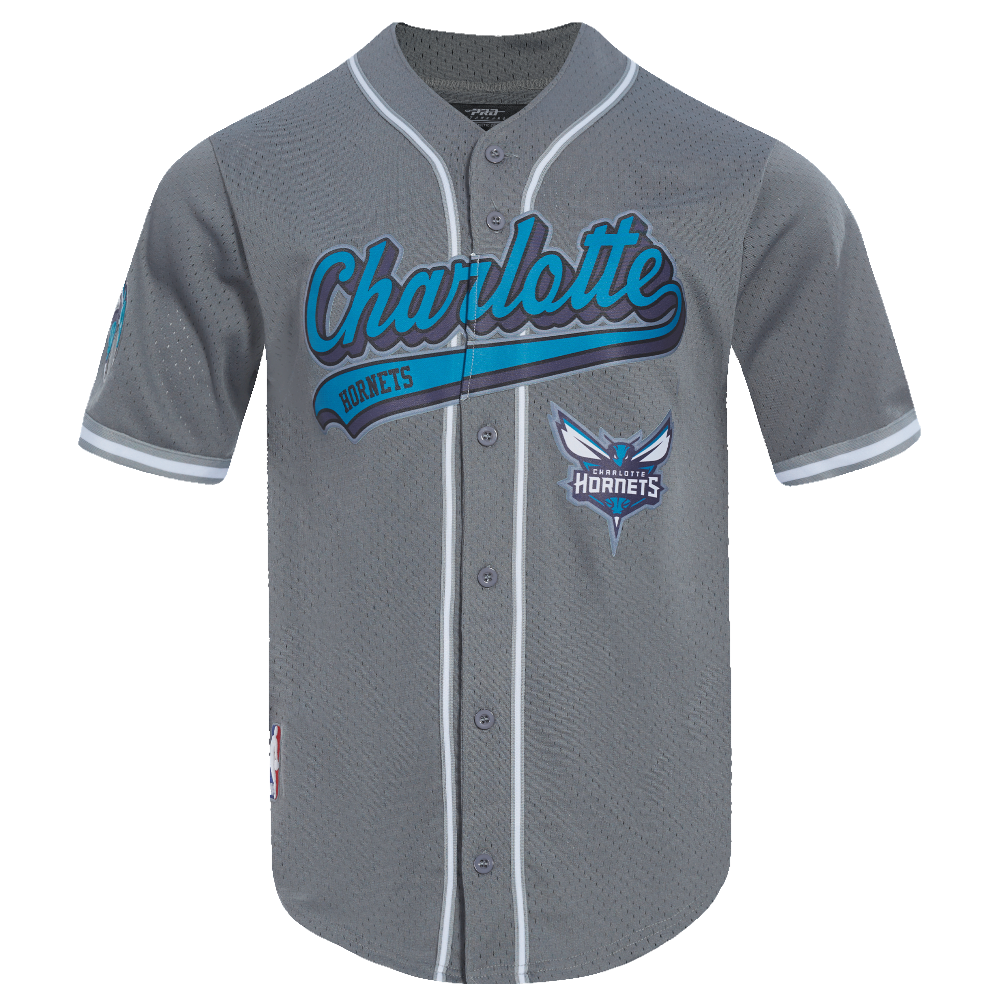 NBA CHARLOTTE HORNETS SCRIPT TAIL MEN'S MESH BUTTON DOWN SHIRT