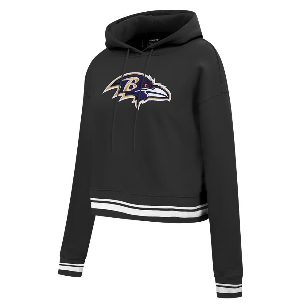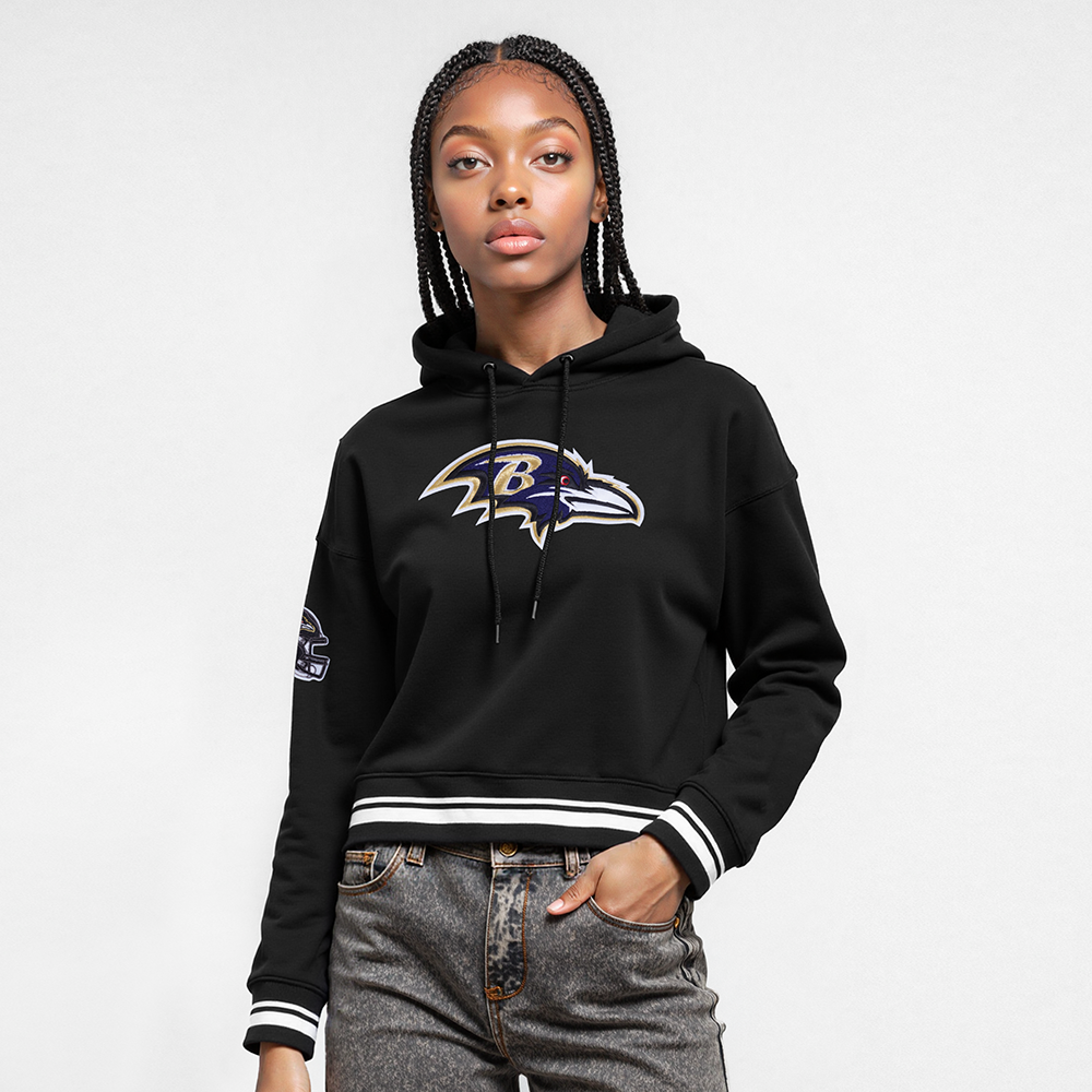 The Pro Standard Premium NFL Baltimore Ravens Retro Classic WoMen's Cropped PO Hoodie (Black)