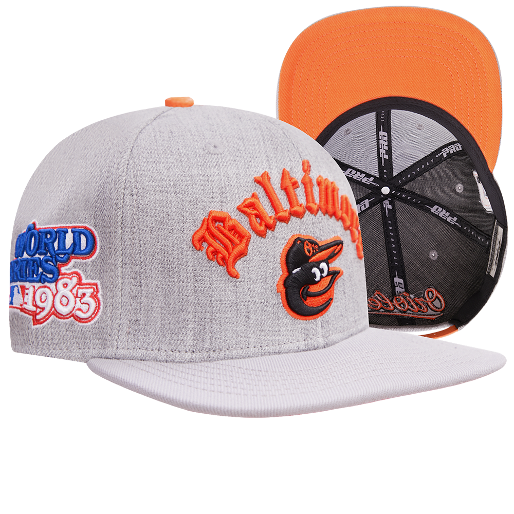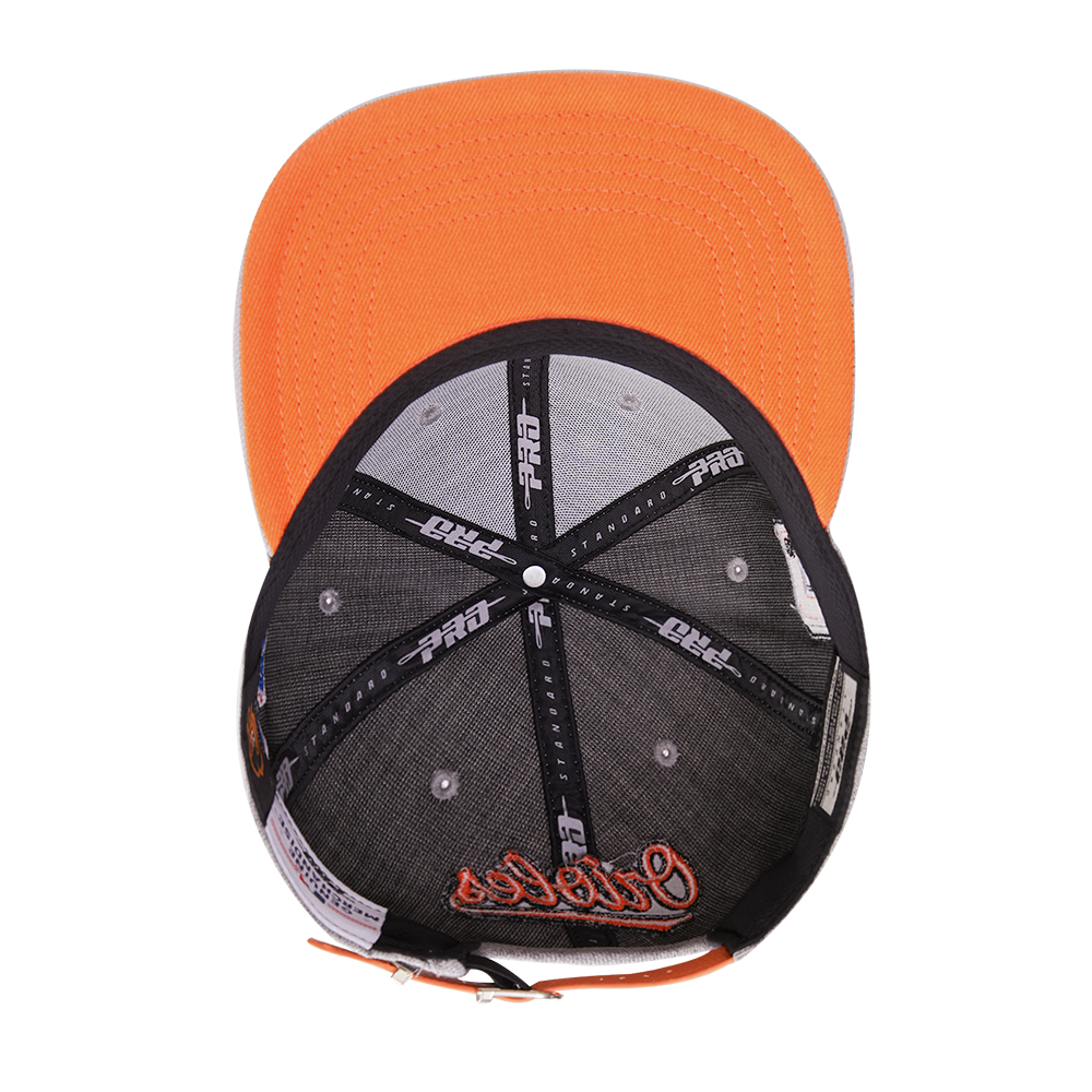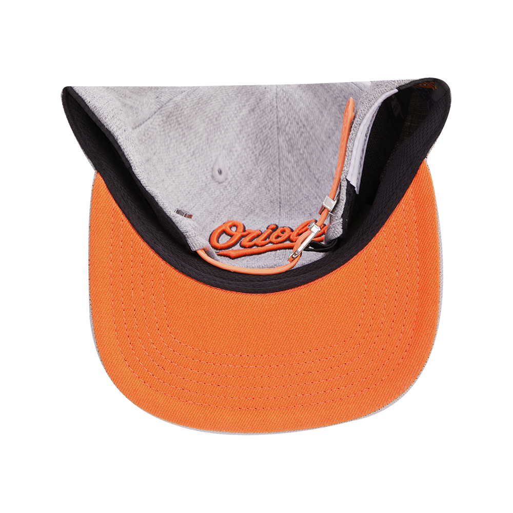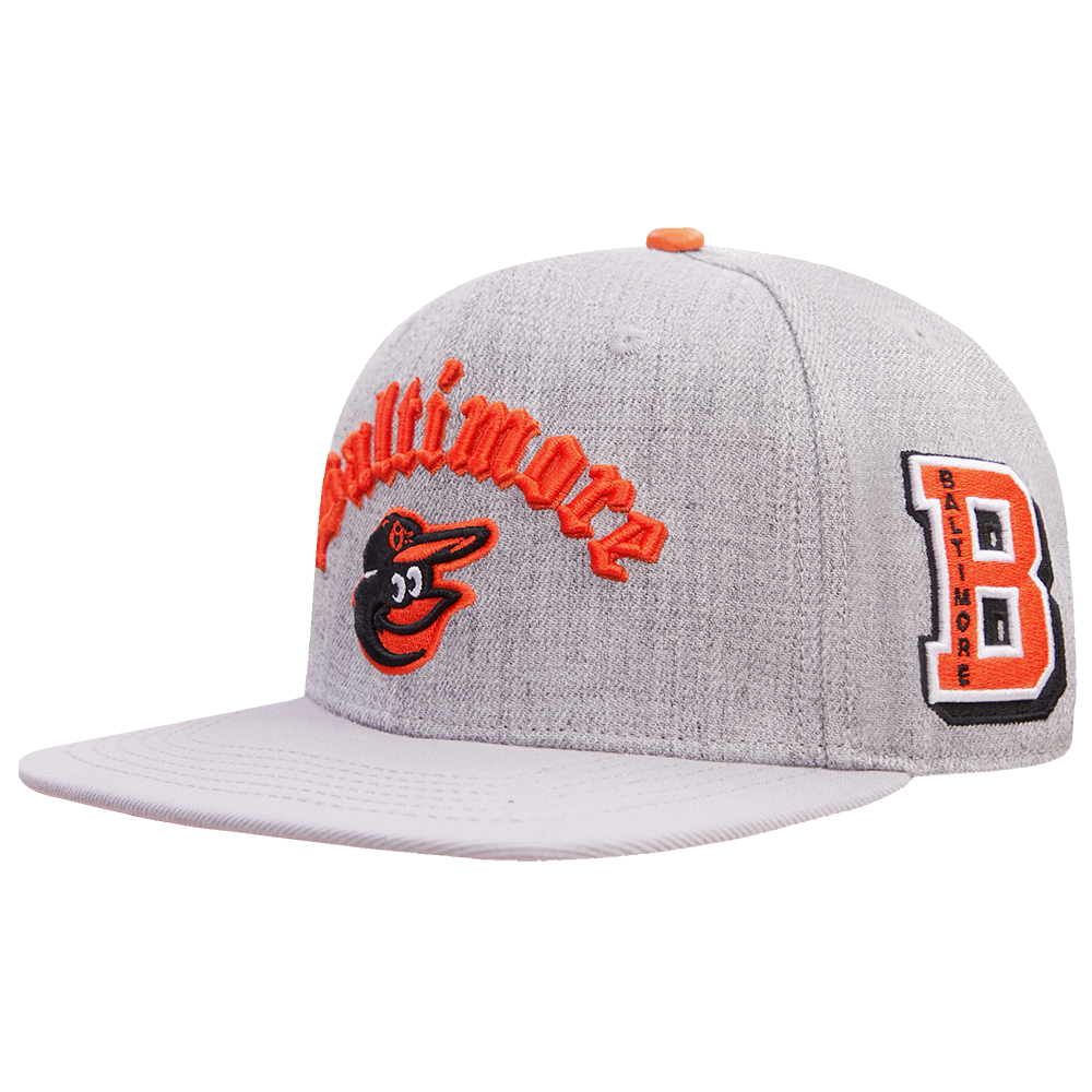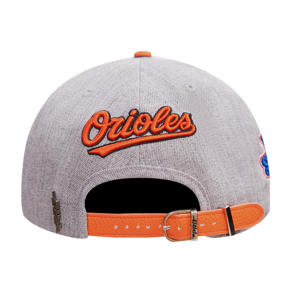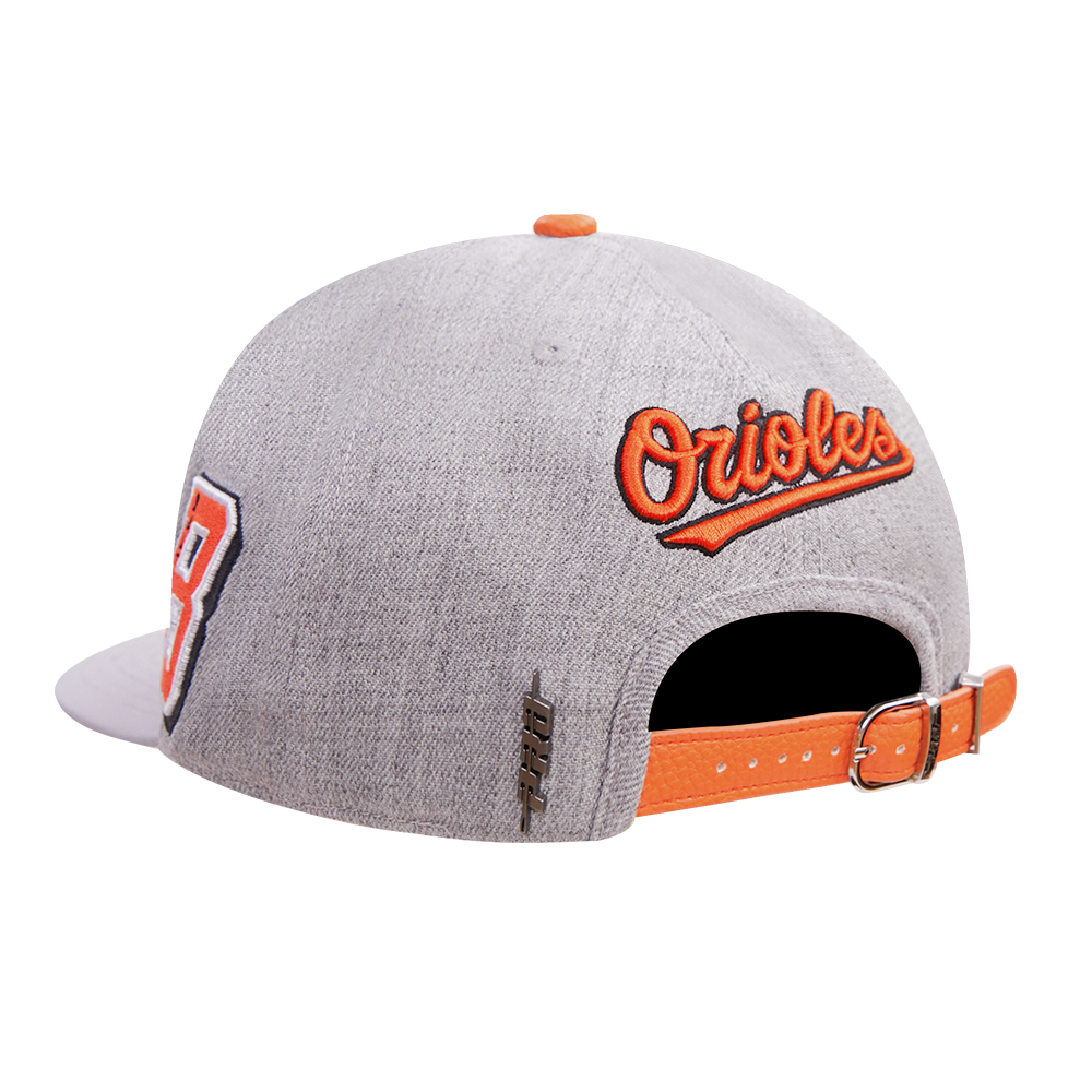 The Pro Standard Premium MLB Baltimore Orioles Old English Unisex 6 Panel Leather Strapback (Heather Grey)